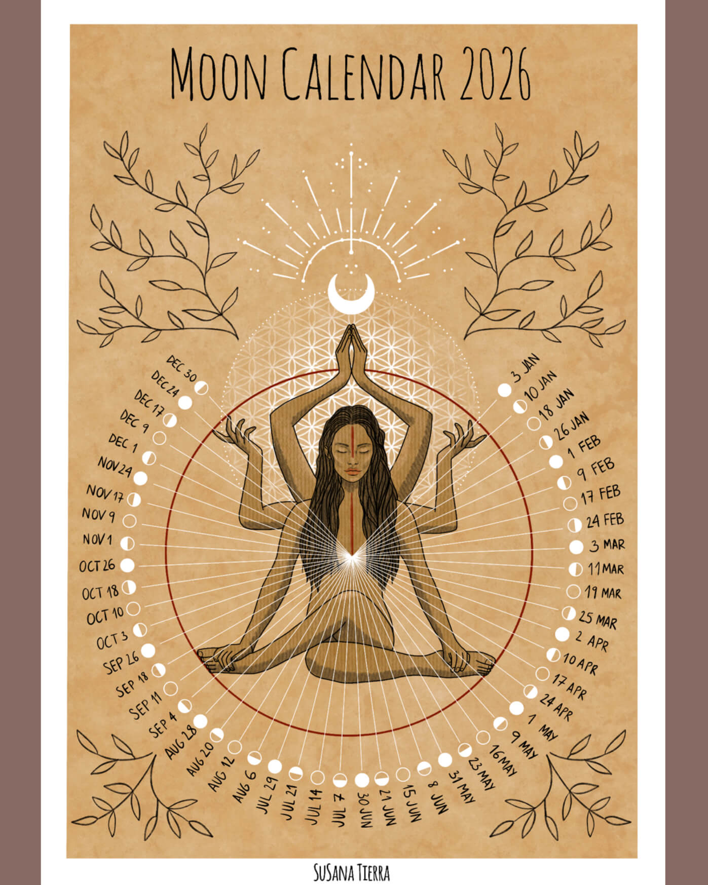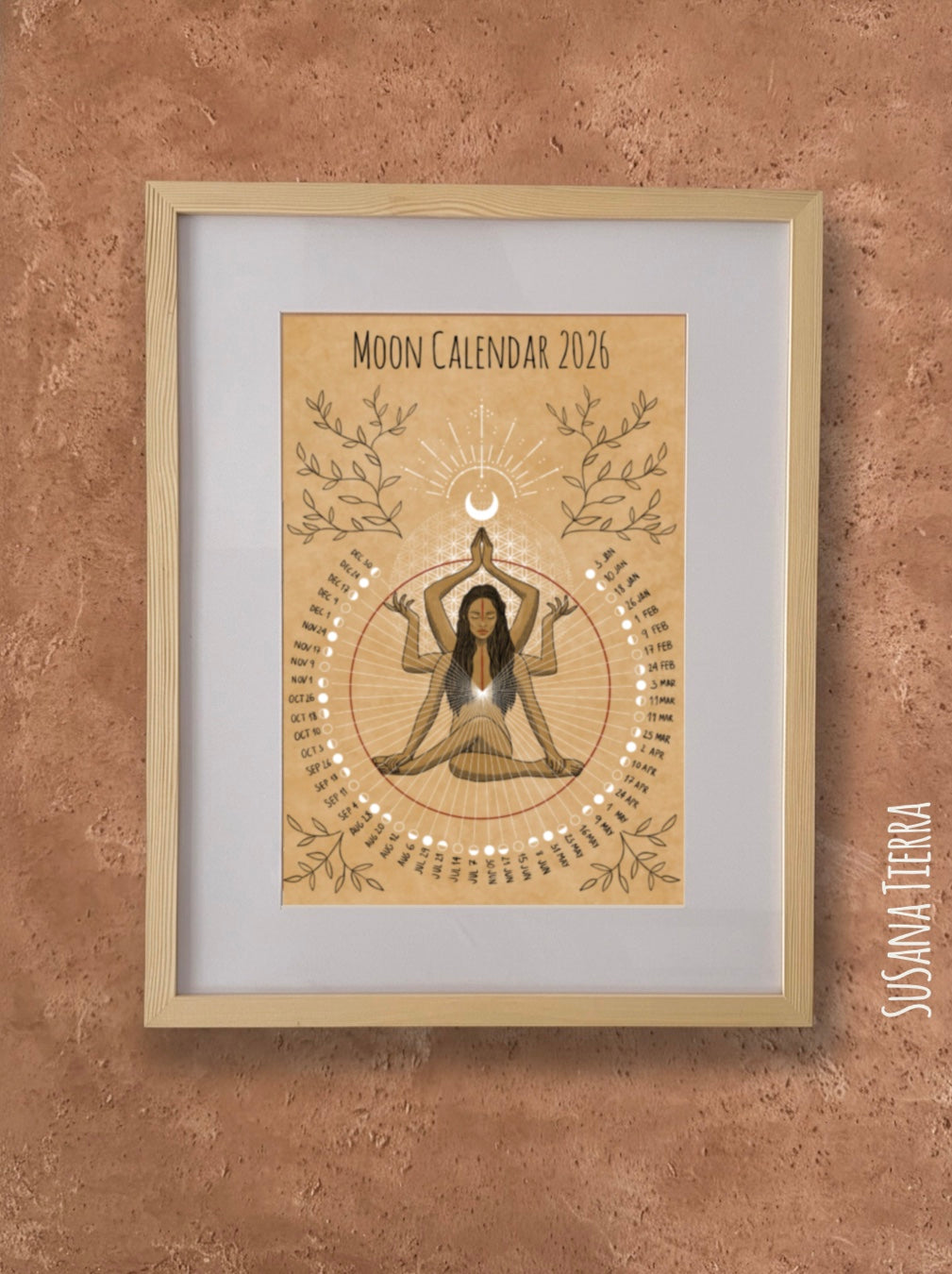 Descubre el Calendario Lunar 2026, una herramienta esencial para quienes desean conectar con los ciclos lunares y vivir en armonía con la naturaleza. Este calendario no solo muestra todas las fases de la luna (luna nueva, cuarto creciente, luna llena, cuarto menguante), sino que también está diseñado para inspirar y decorar tu espacio con arte único y consciente.